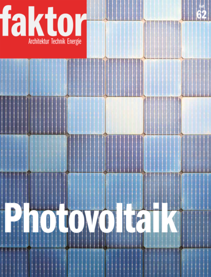 Das Faktor-Themenheft «Photovoltaik» zeigt den Stand der Praxis im Umgang mit der PV-Gebäudeintegration und stellt die vielseitigen Qualitäten der Photovoltaik als Gestaltungselement ebenso wie ihre Bedeutung für eine ganzjährige Energieeigenversorgung dar. Zum Themenheft |